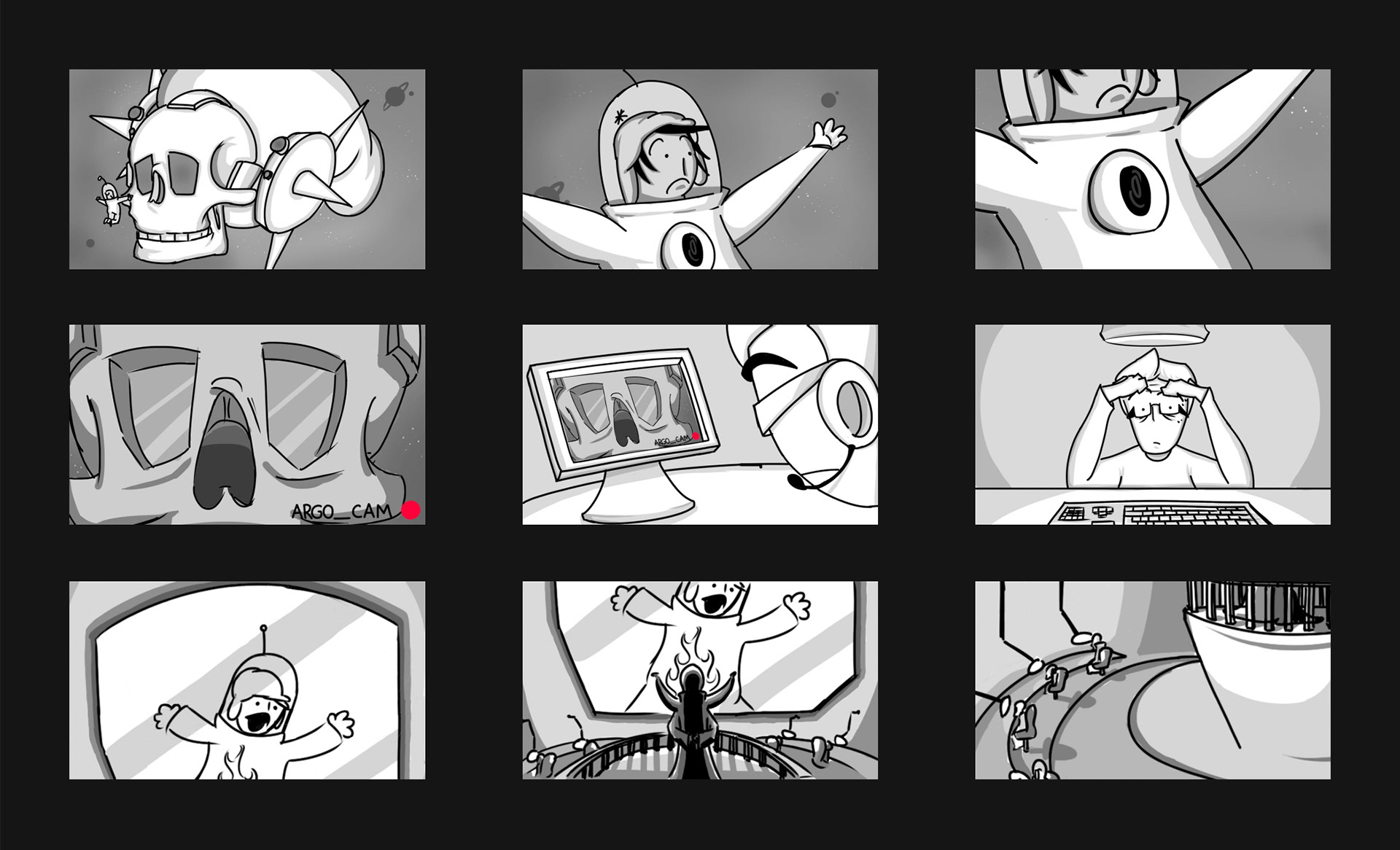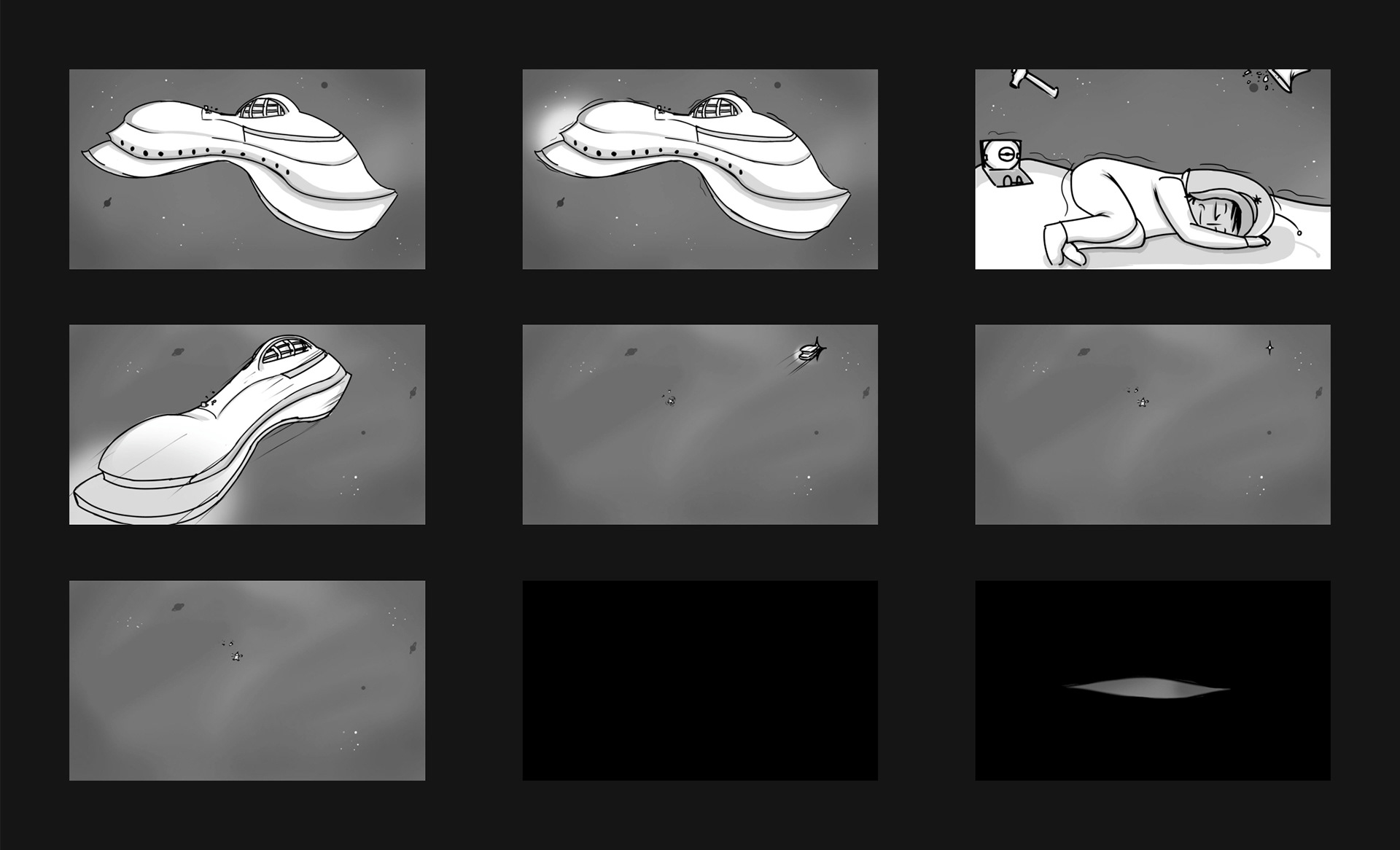A segment of storyboards from my 2021 animated short "Starship Stupor"!